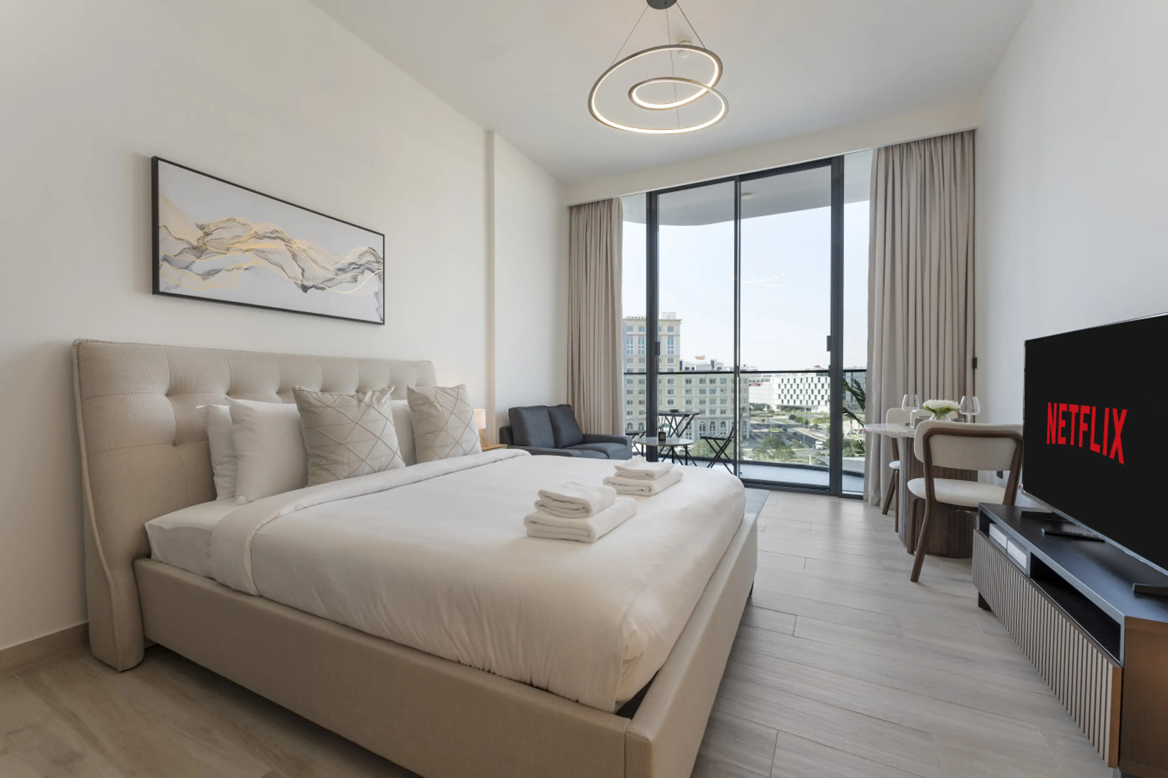 Modern 1BR Oxford Terraces JVC | PS5, Terrace & Rooftop Pool